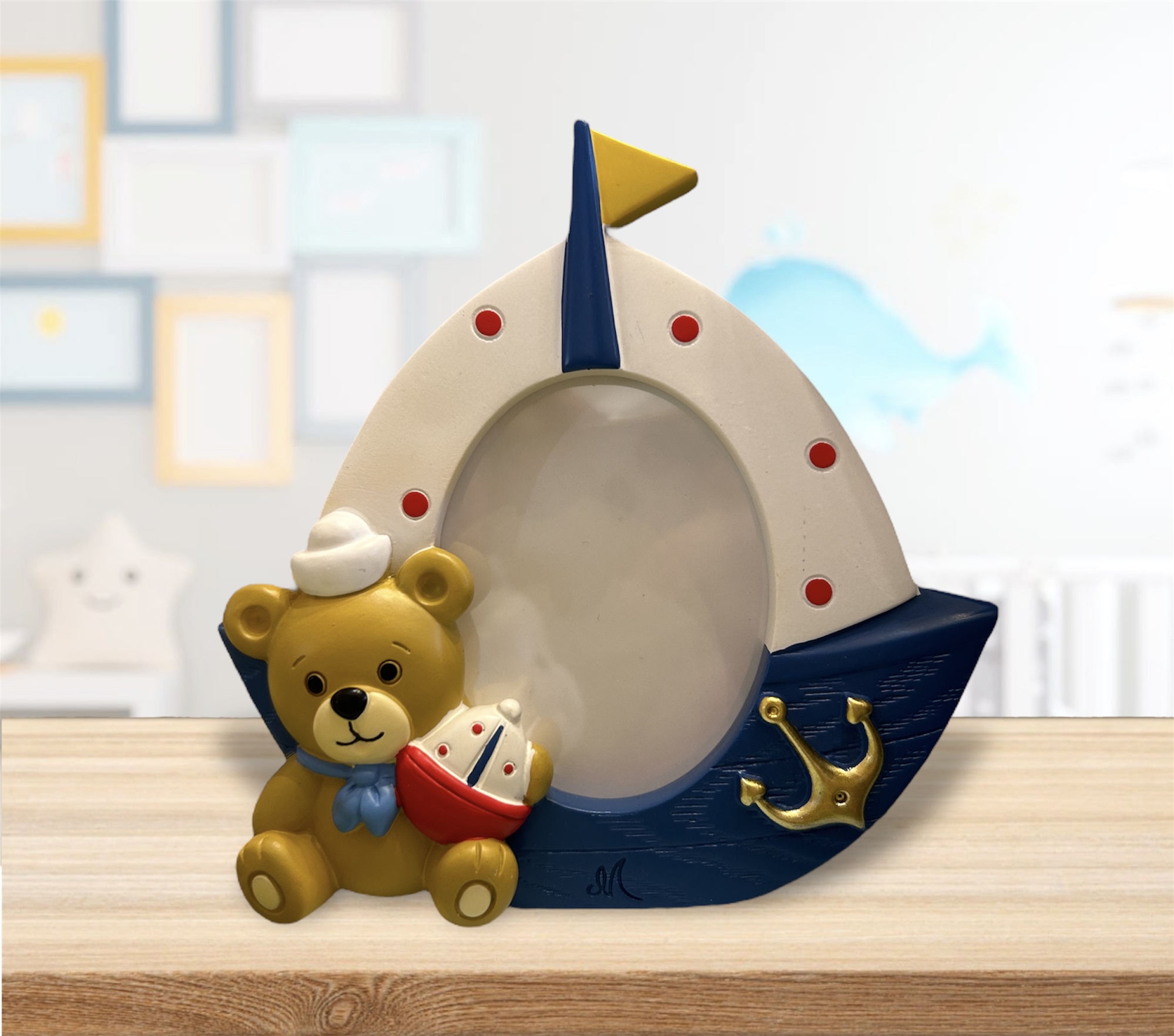 Dettagliata e tenera cornice con orsetto marinaio in due dimensioni disponibili.