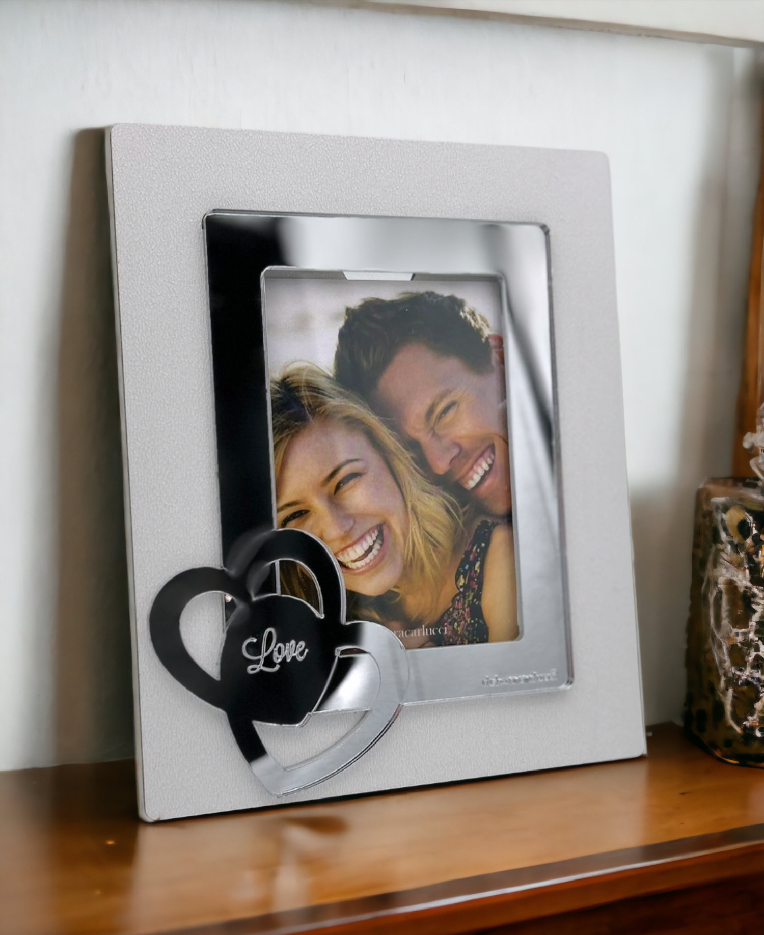 Delicata cornice portafoto bianca e argento a specchio della linea di Debora Carlucci.