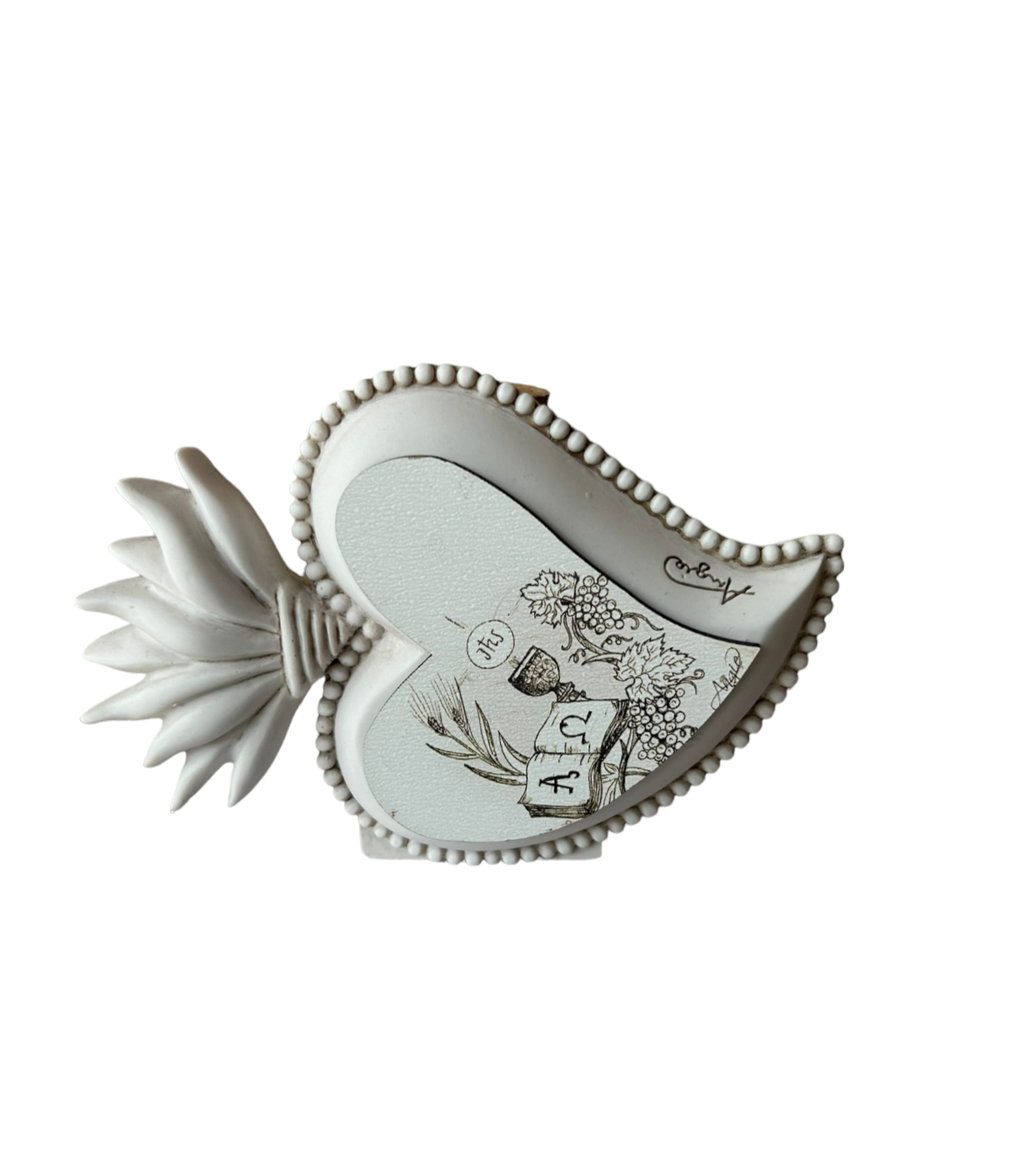 Ex Voto profumatore con portaconfetti cuore sacro bianco di Angie.