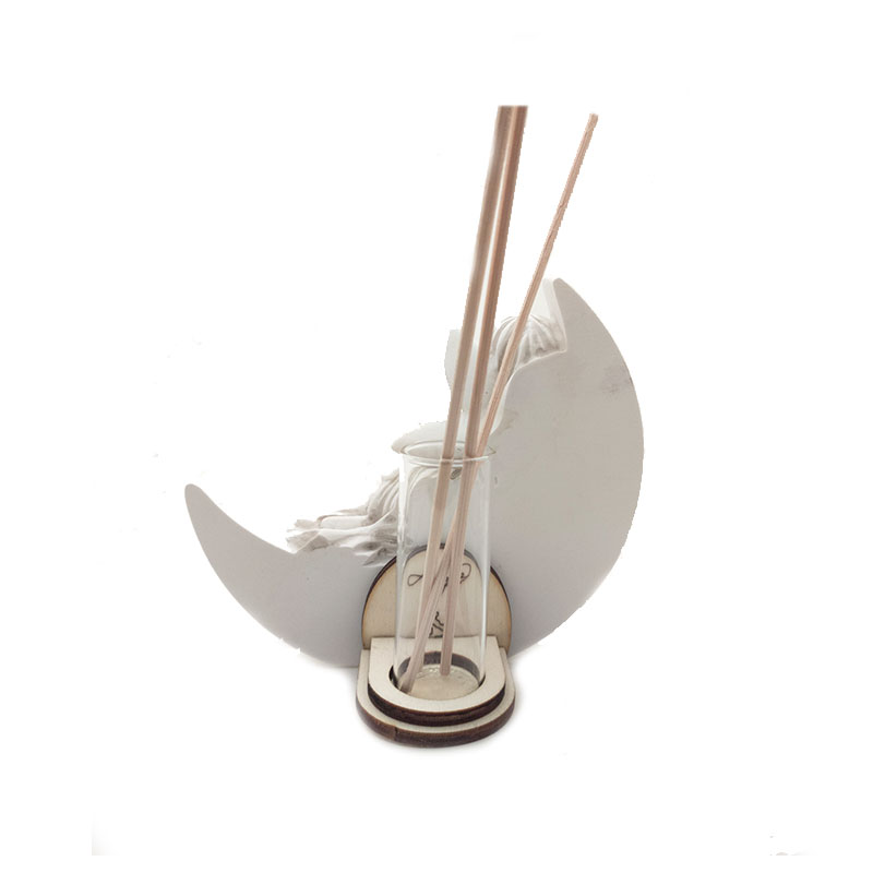 Profumatore con bellissima fatina che legge adagiata sulla luna della linea Magic di Angie.