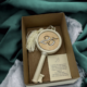 Elegantissimo pumo bianco e oro in perfetto come bomboniera per qualsiasi occasione o come idea regalo.