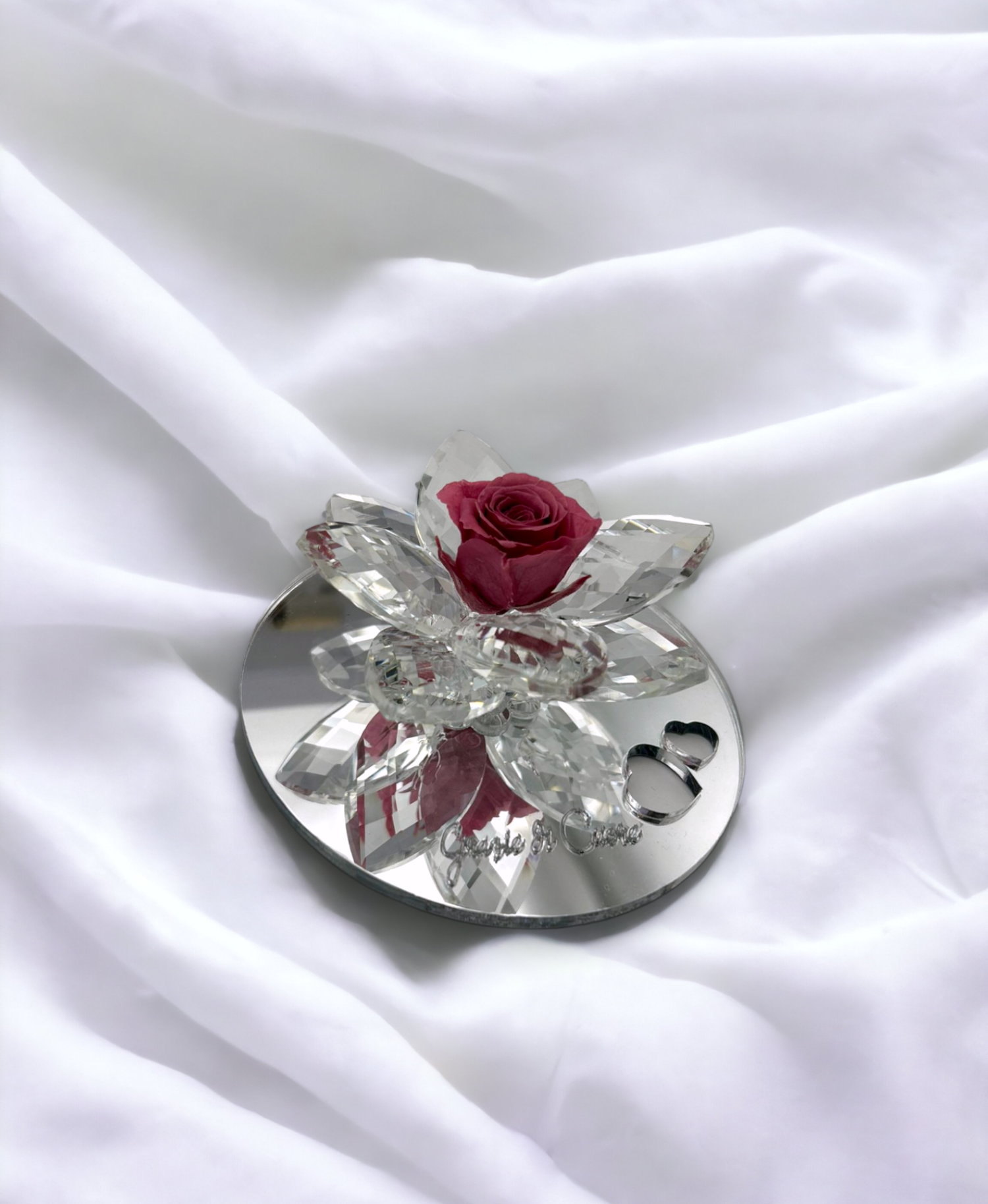 Meravigliosa rosellina stabilizzata adagiata su fiore simil SWAROVSKI della linea di Debora Carlucci