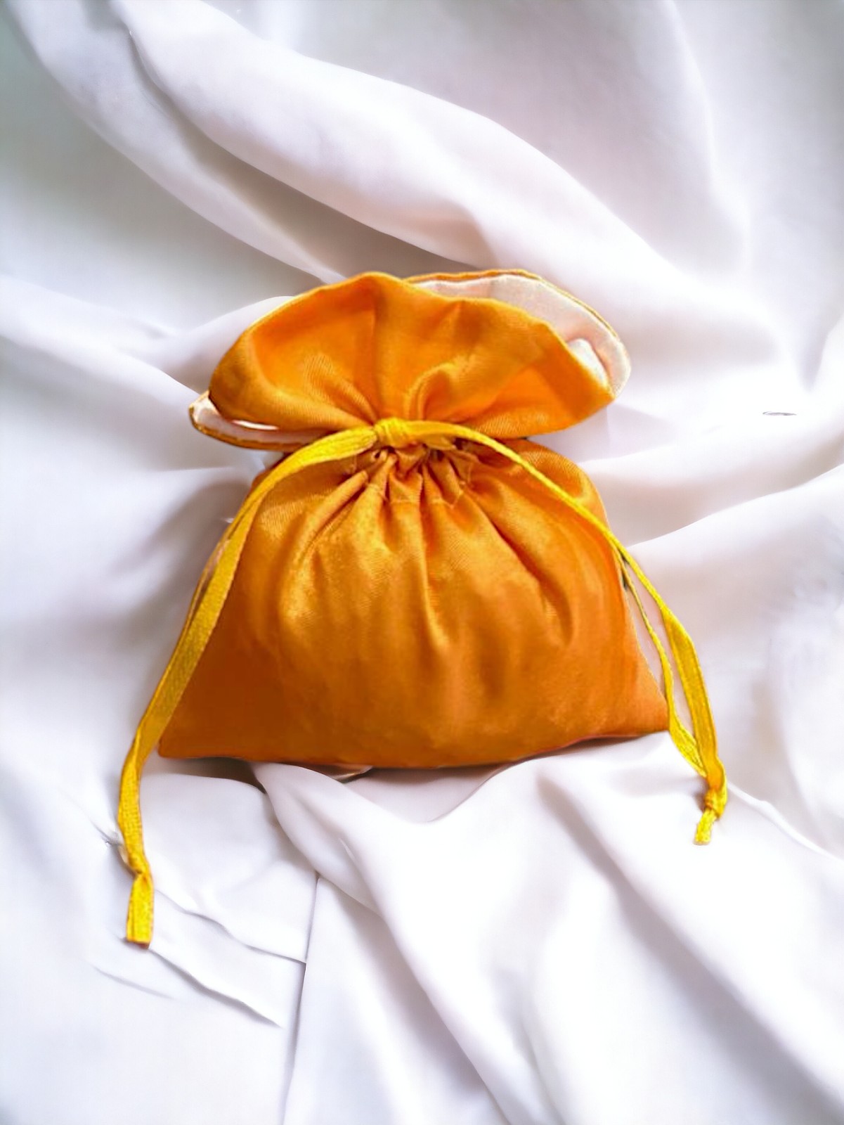 Sacchetto completo di 5 confetti, bigliettino e decorazione.
