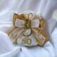 Delicato sacchetto porta confetti in raso bianco, impreziosito da un elegante dettaglio: un ciondolo con perla.